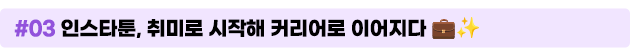 처음엔 그냥 좋아서 그렸던 그림이 새로운 커리어 기회를 만들어주곤 합니다. 🎨 꾸준히 그리다 보면 팔로워가 늘고, 브랜드나 기관의 협업 제안이 찾아오죠. 그때부터 인스타툰은 취미를 넘어 커리어로 이어집니다. 💌✨