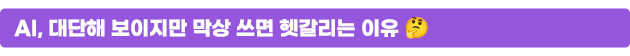 AI는 분명 여기저기서 많이 쓰이고 있지만, 막상 직접 써보면 생각보다 쉽지 않습니다. 결과는 어딘가 애매하고, 기대했던 퀄리티와는 거리가 느껴지기도 하죠. 그래서 AI는 여전히 많은 사람들에게 다들 잘 쓰는 것 같은데, 나는 잘 모르겠는 도구에 가깝습니다.